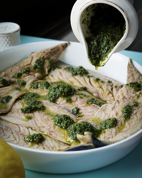 Филе скумбрии предварительно размораживаем - перекладываем на ночь из морозилки в холодильник